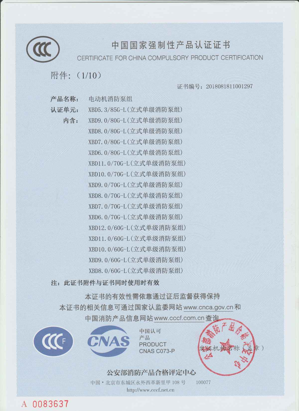 公司生产产品通过ISO9001:2015国际质量体系认证,消防系列产品取得CCCF国家强制性认证证书,通过认证型号规格达500余个,并取得全国工业产品生产许可证,产品经权威机构检测,全部达到规定要求。 公司主营产品有:生活循环泵,消防用泵,污水泵,化工用泵,二次供水设备,控制柜等。产品被广泛应用于石油、化工、冶金、矿山、发电、热力、城市建设、污水处理、消防设施、集中采暖、农业排灌等行业。